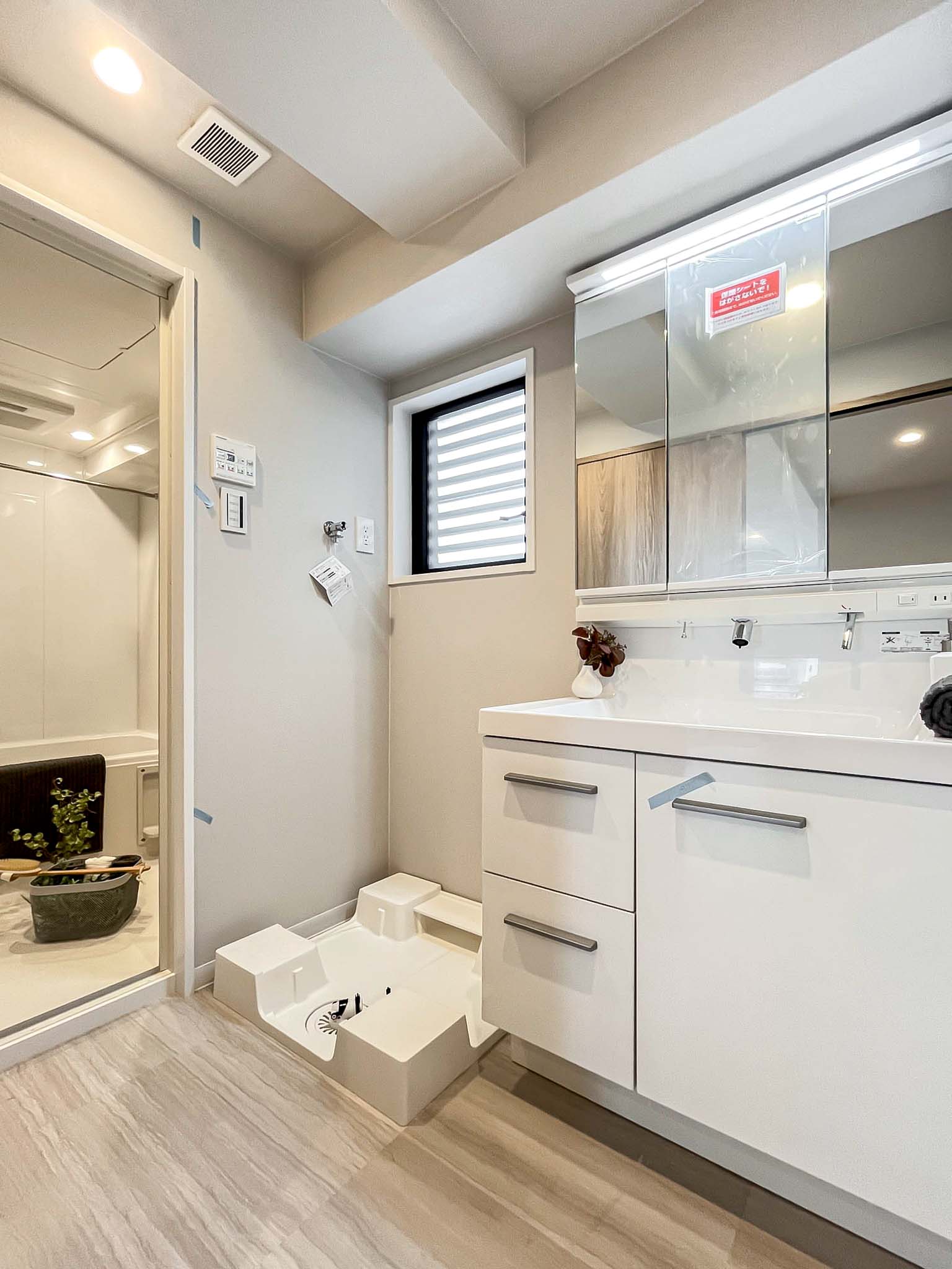 ■収納豊富で三面鏡・LED照明の洗面台♪