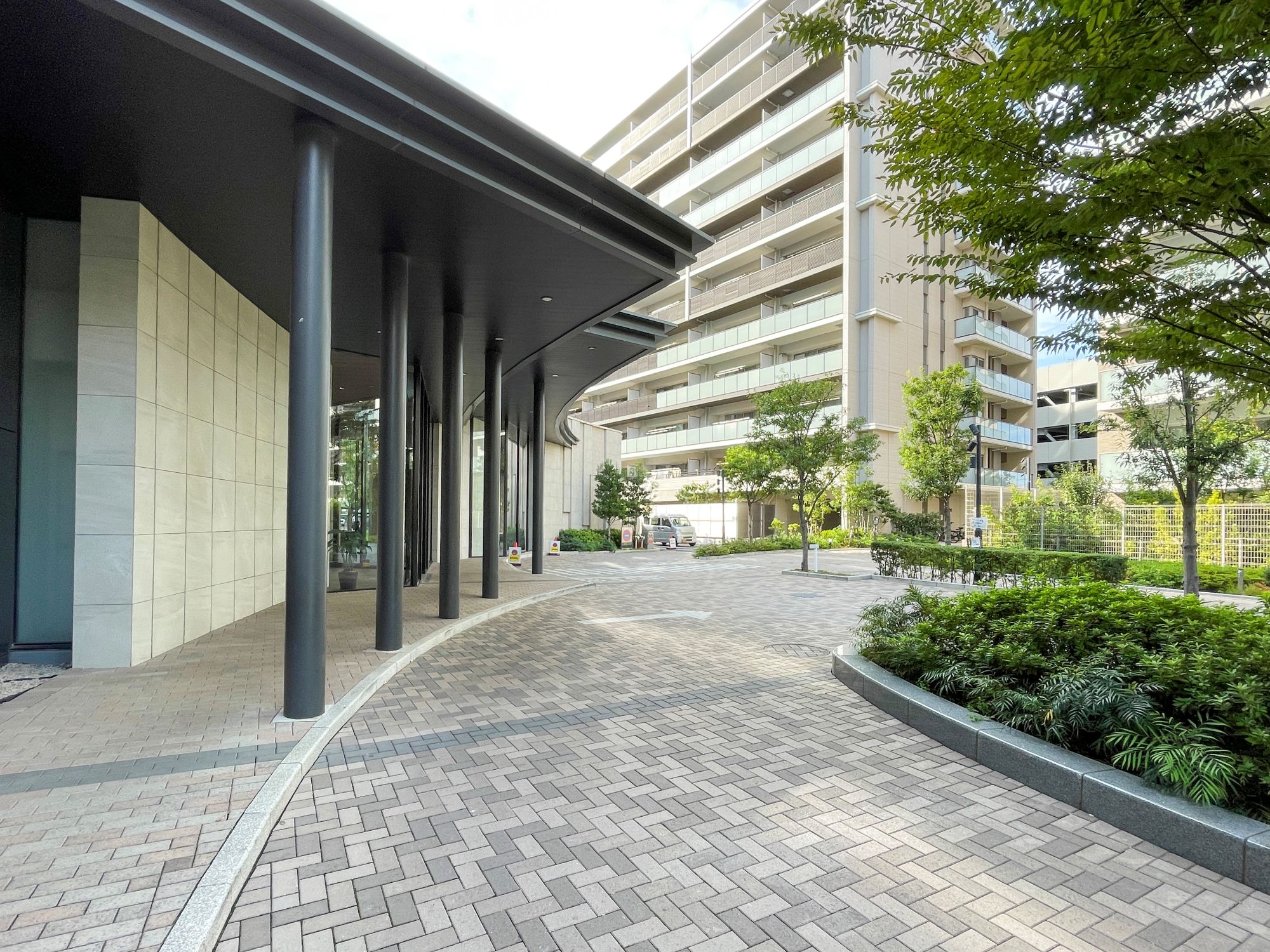 ■マンション敷地内に自然を感じられる中庭あり