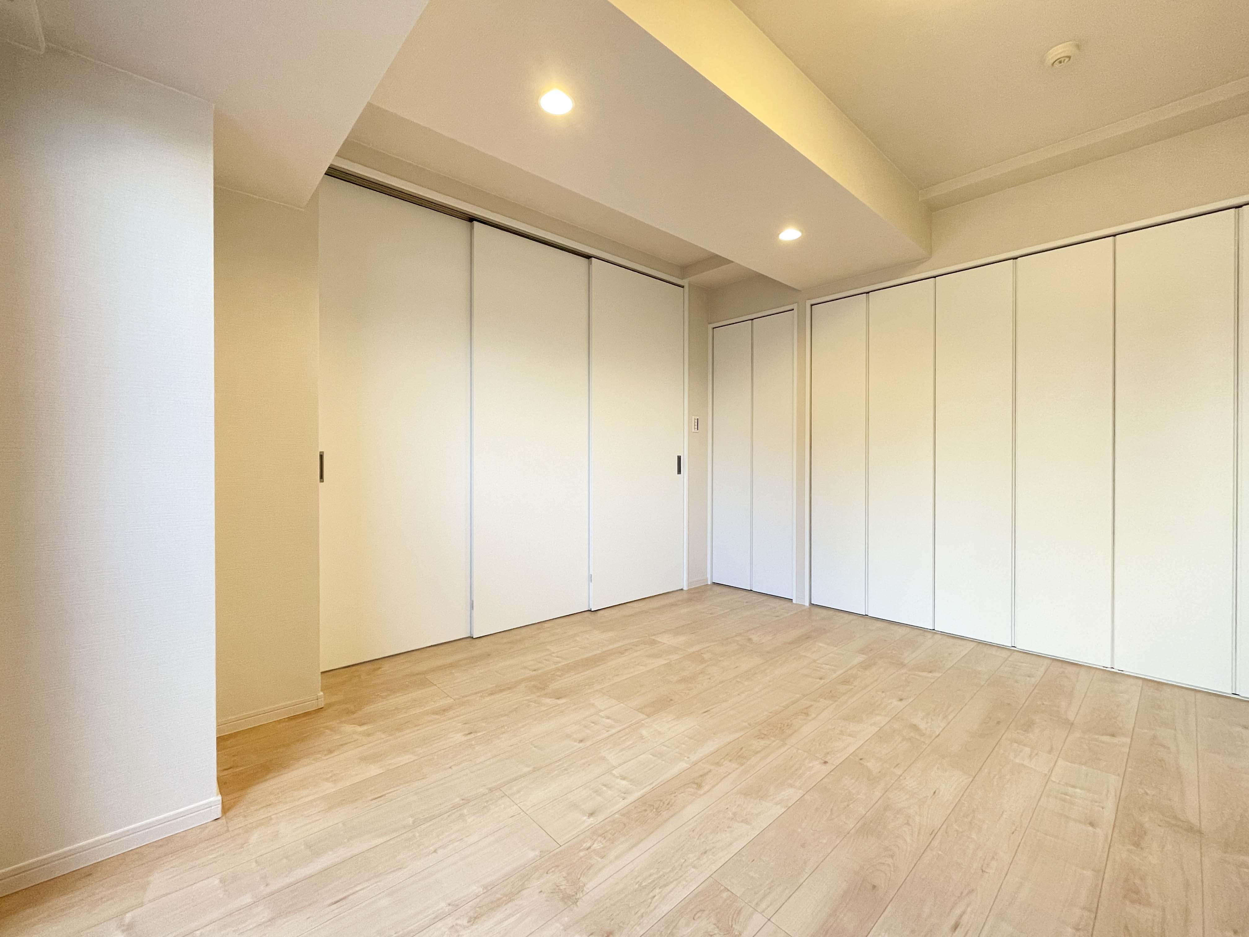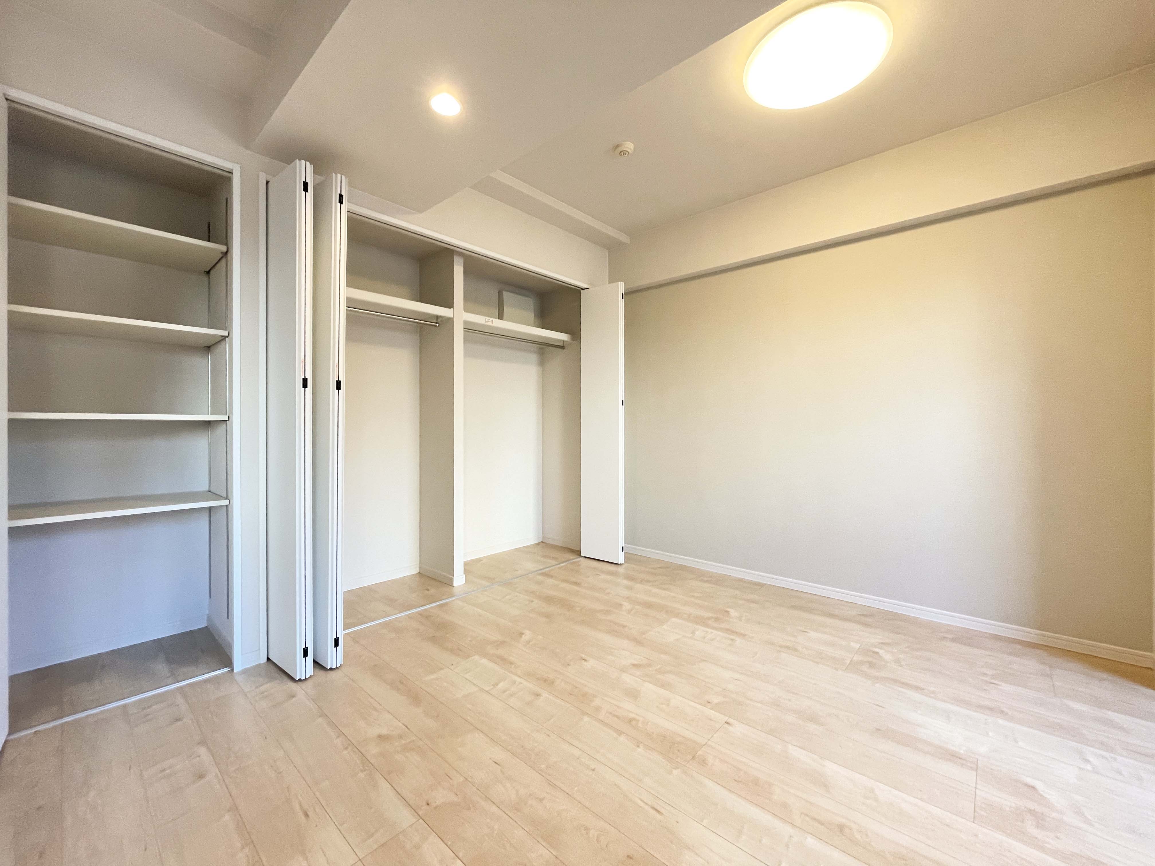 ■洋室の壁一面に収納スペース確保