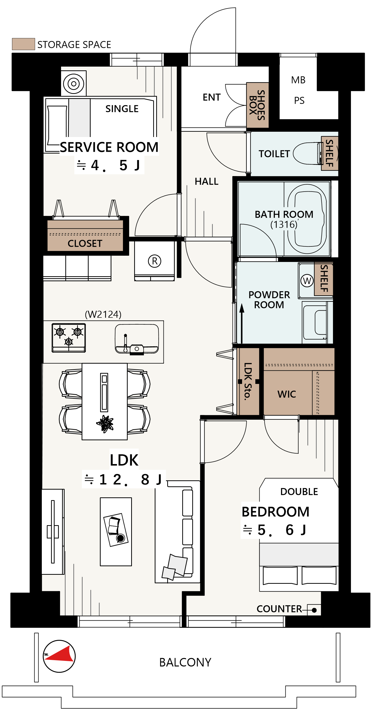 1SLDK+W