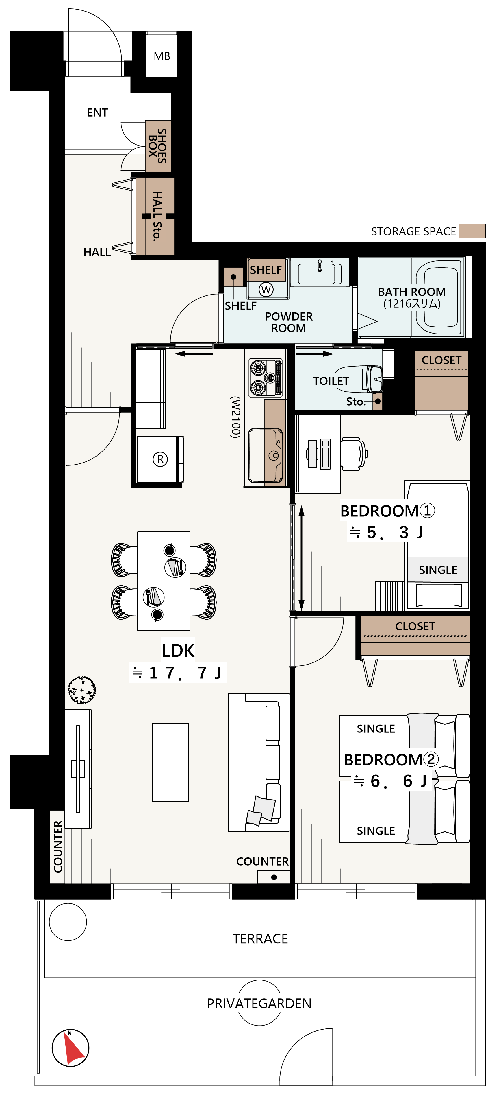 LDK約17.7帖×専用庭付き住戸