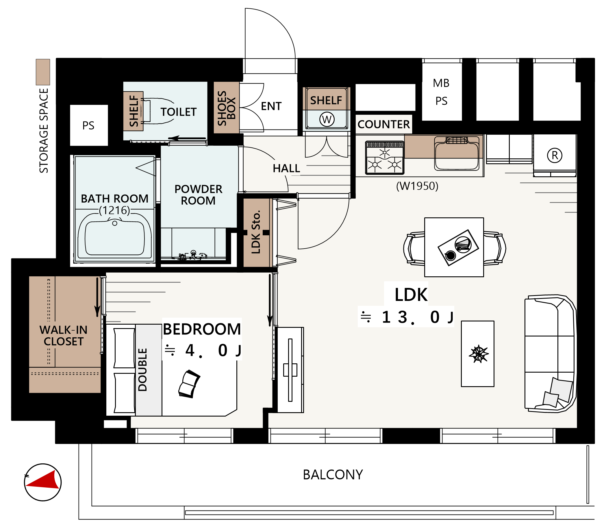 - 1LDK+W