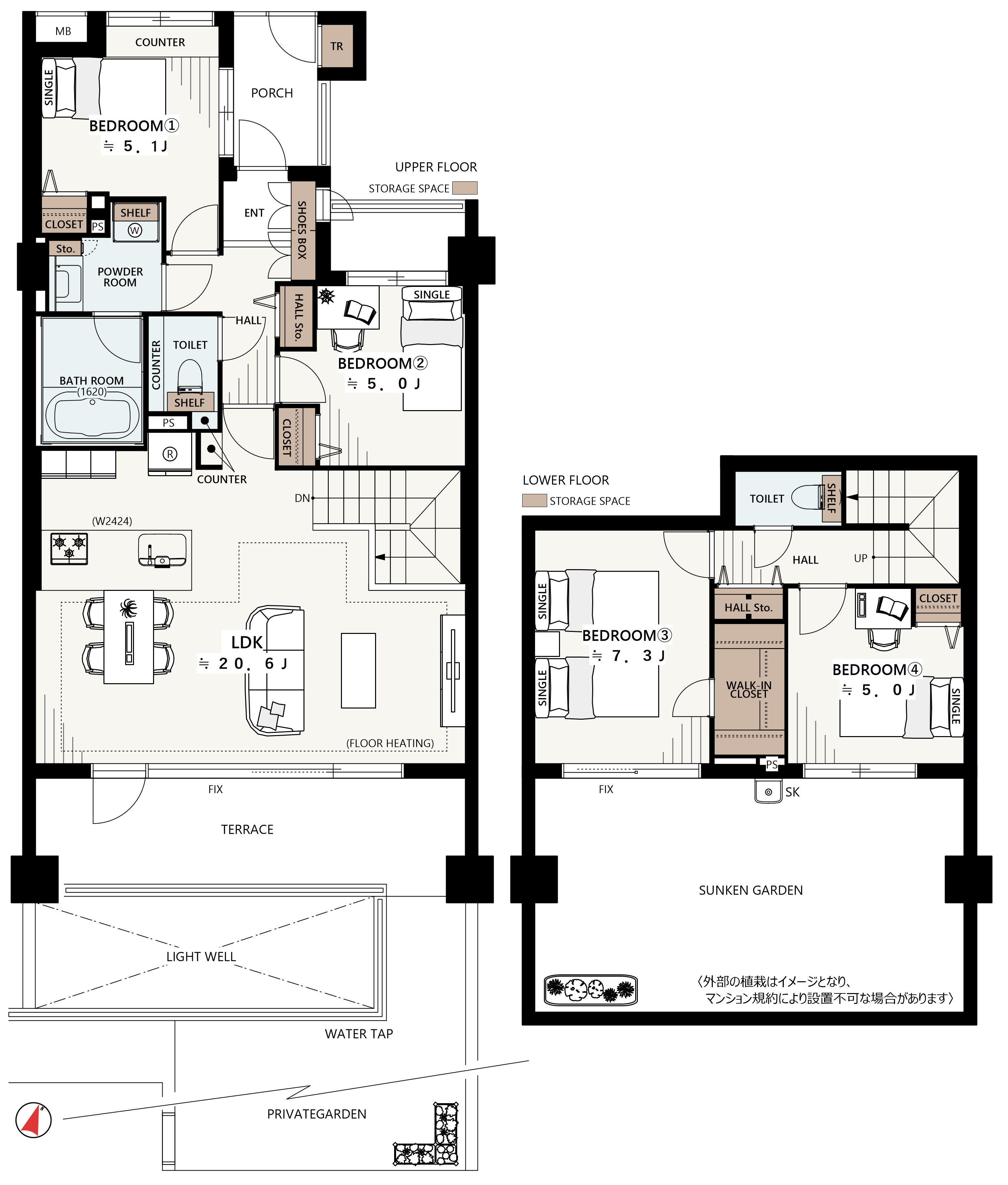 ・サンクンガーデン:28.80㎡