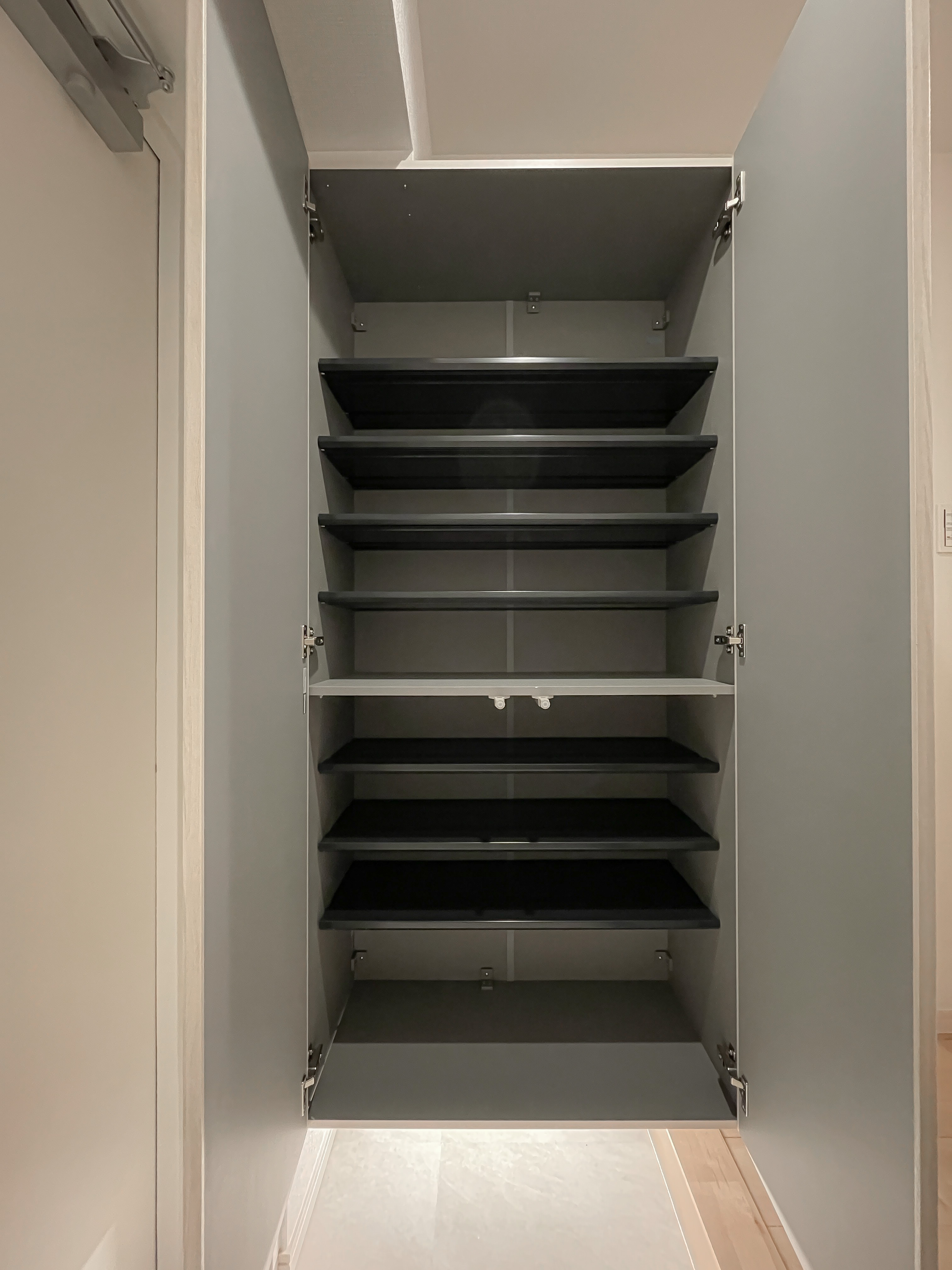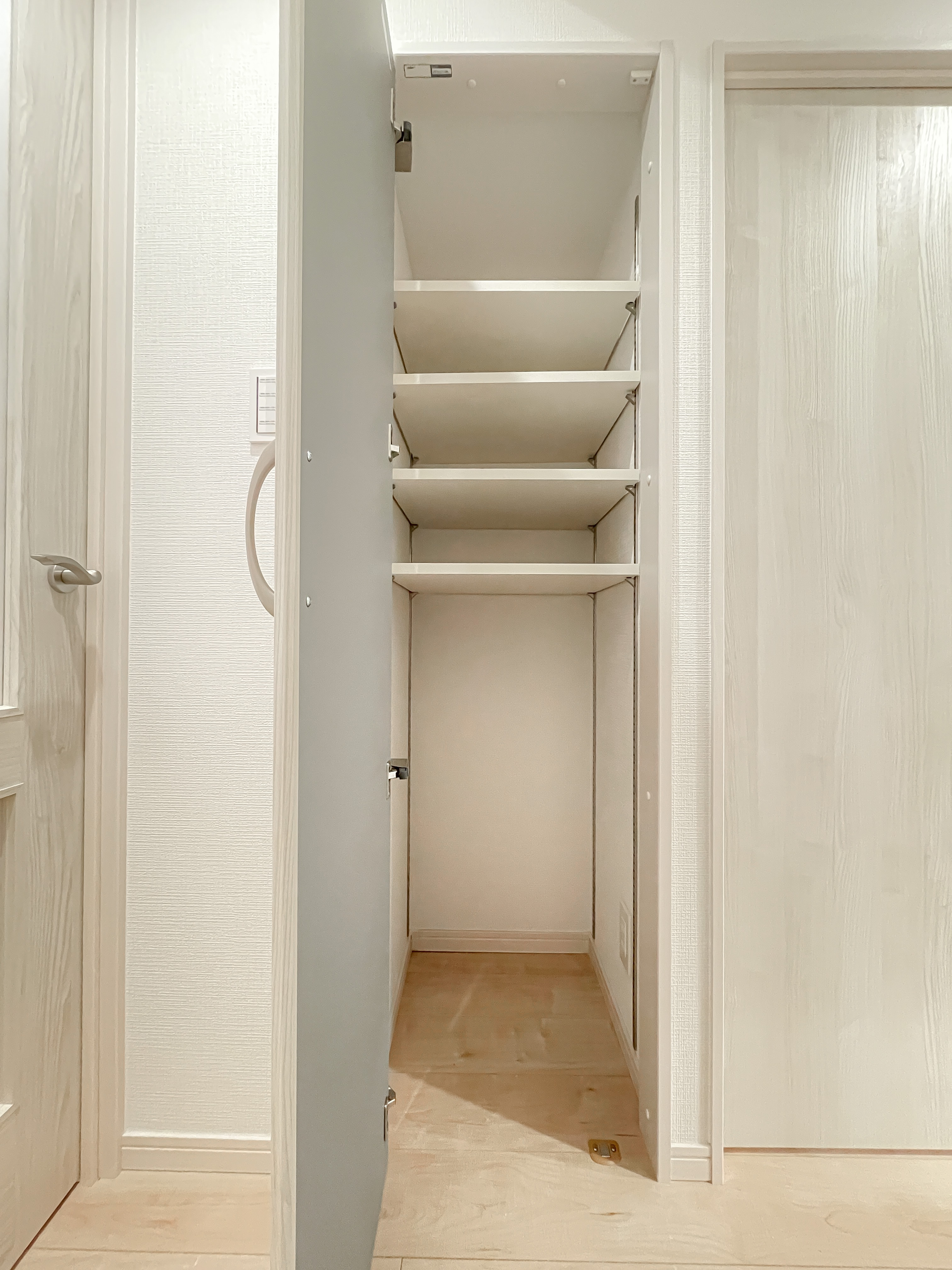 ■廊下に可動棚&コンセント付の収納スペース
