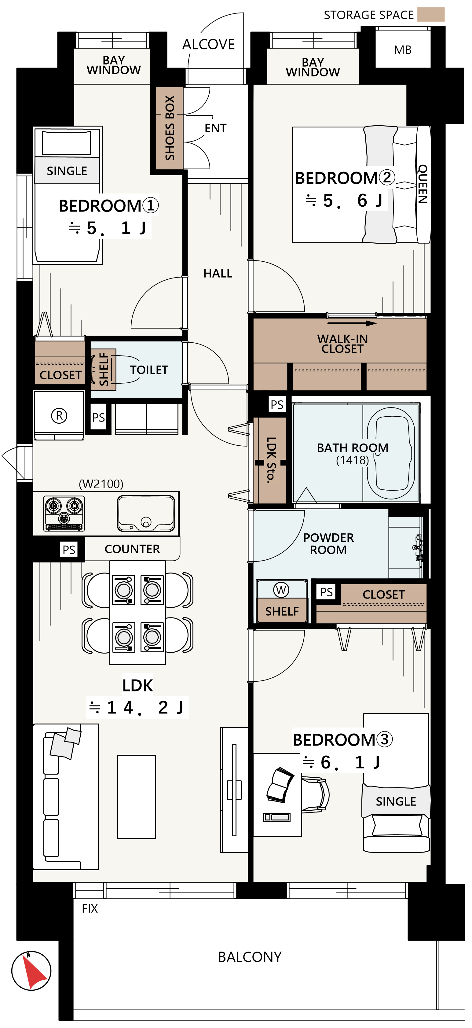 3LDK+W