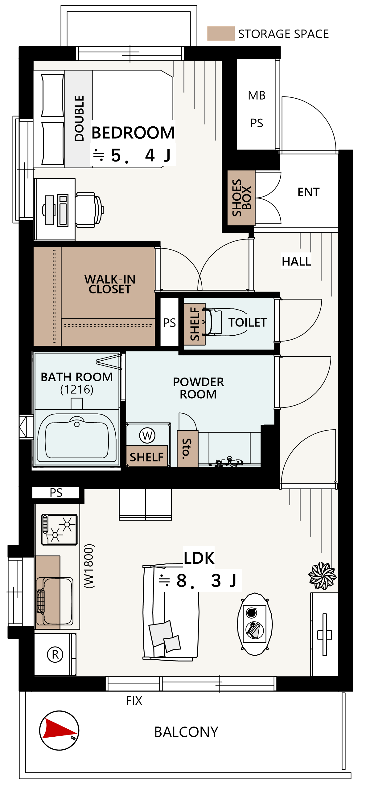 1LDK+W