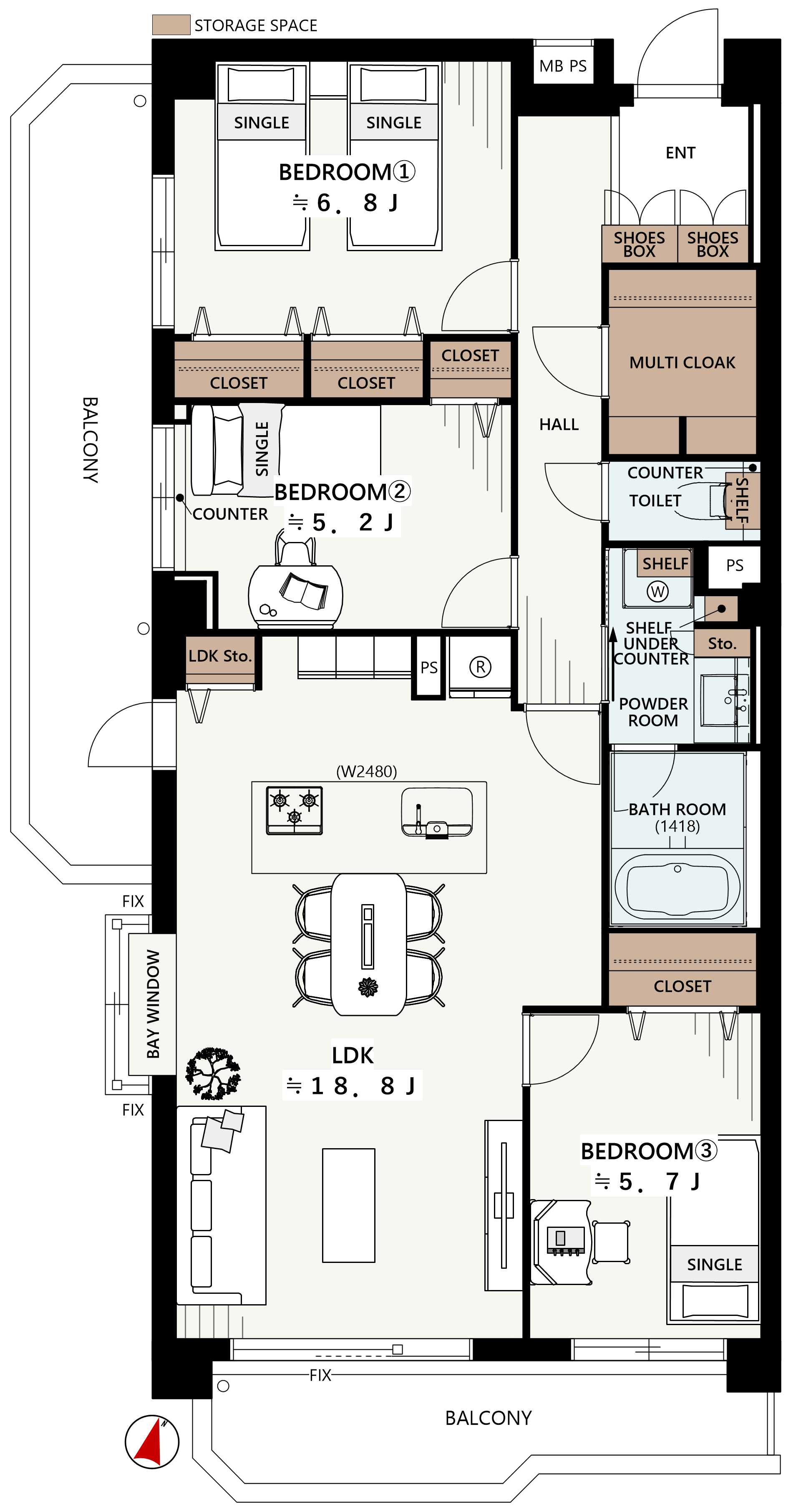 ■各居室5帖以上&収納スペースを確保
