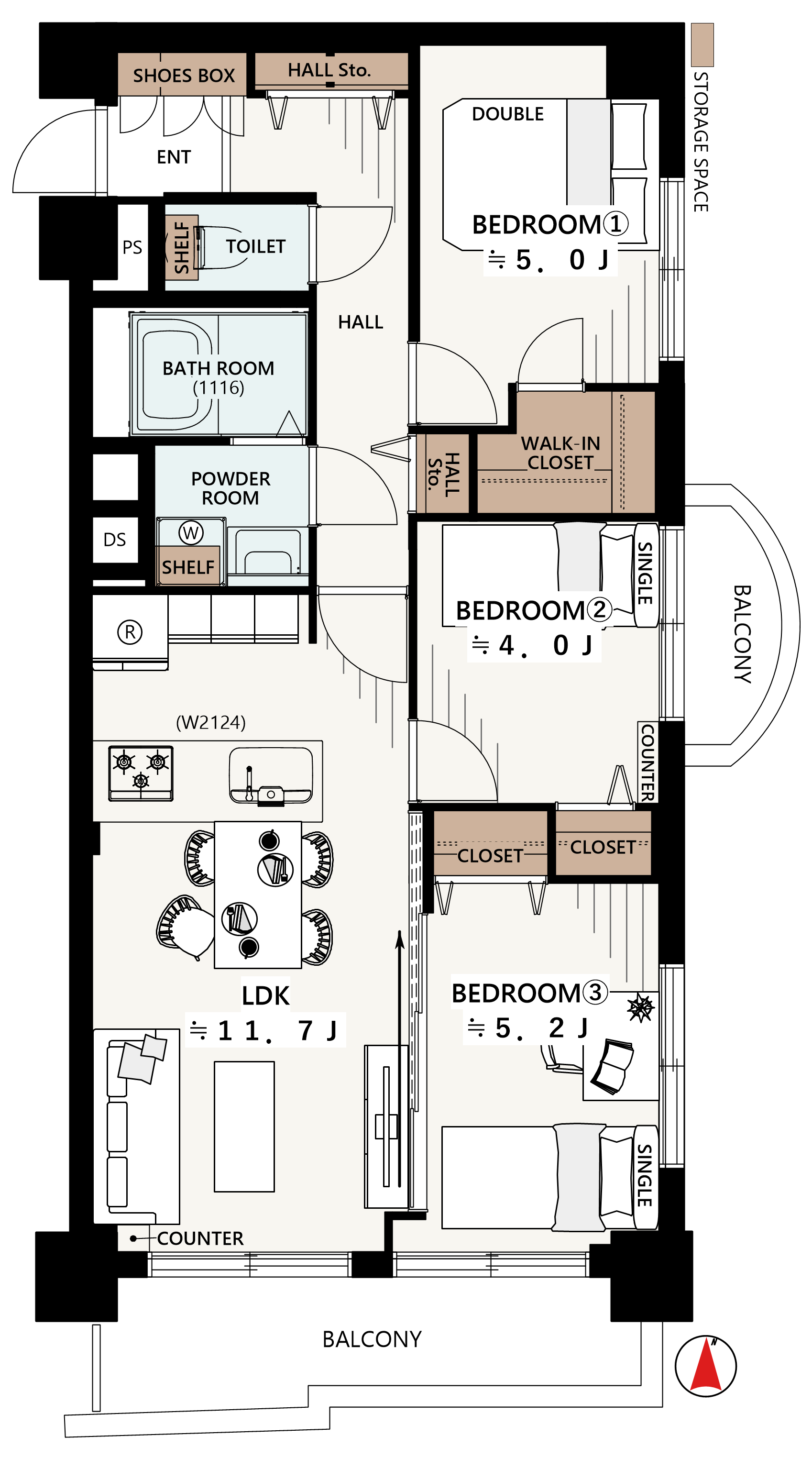 3LDK+W