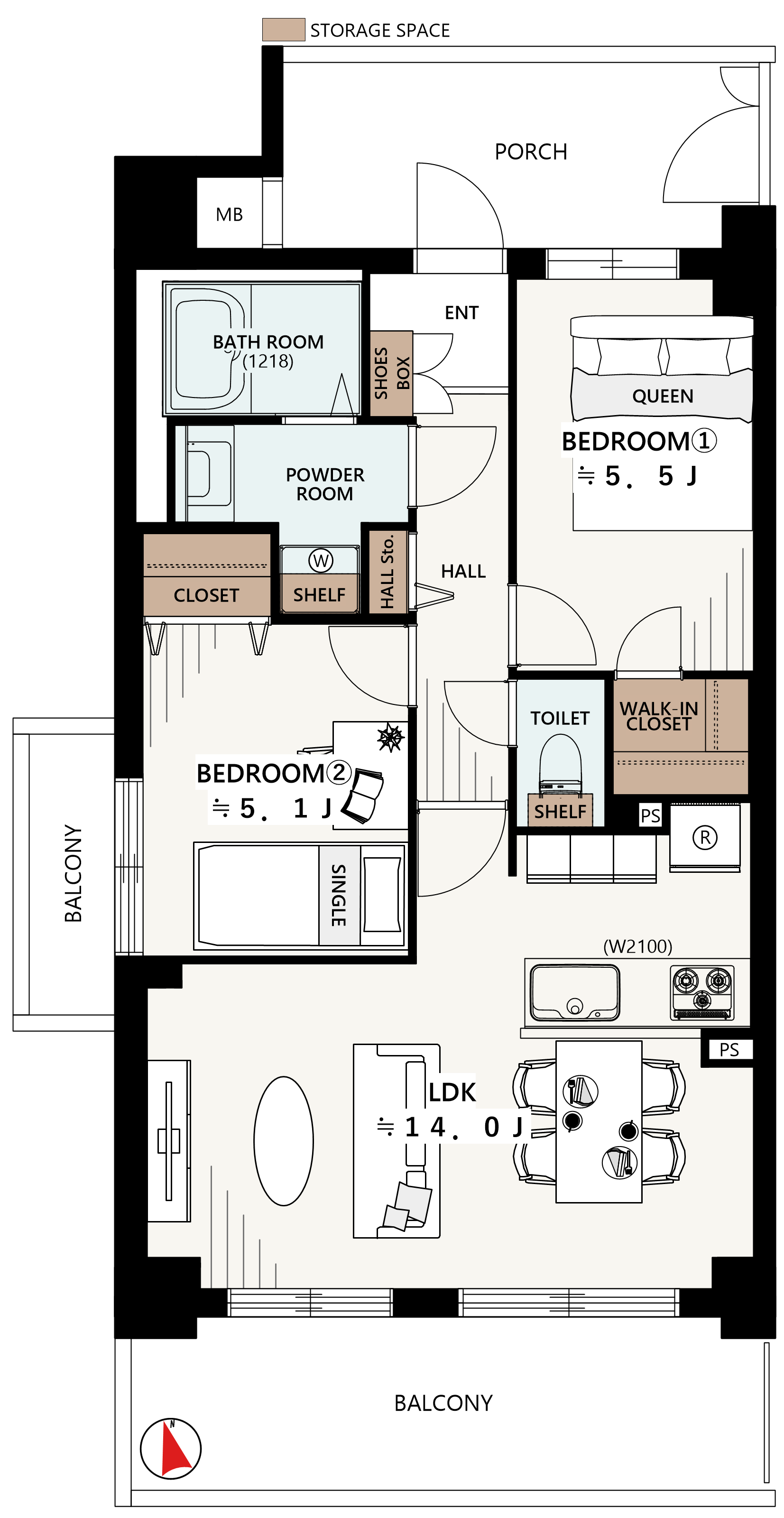 - 2LDK+W