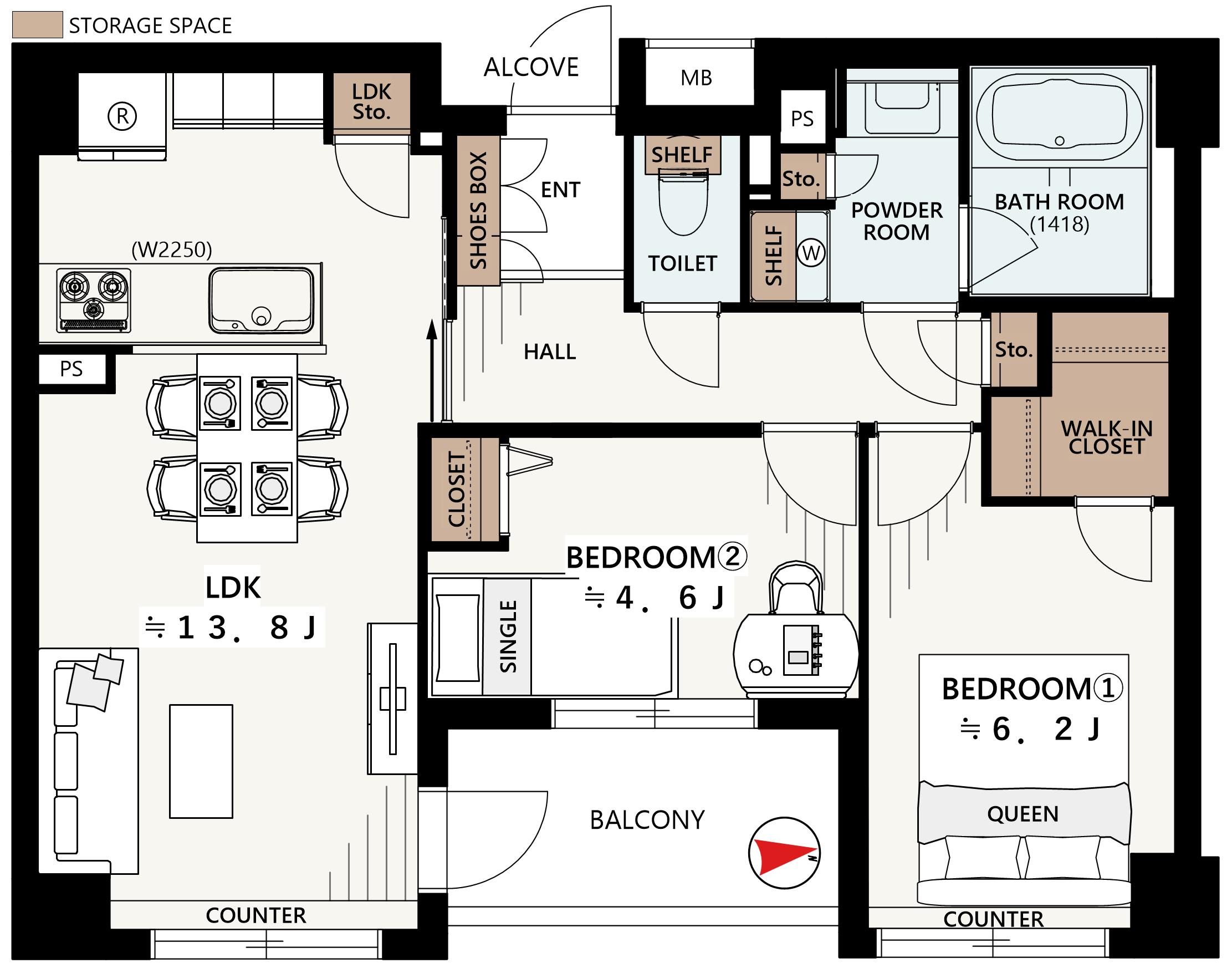 - 2LDK+W